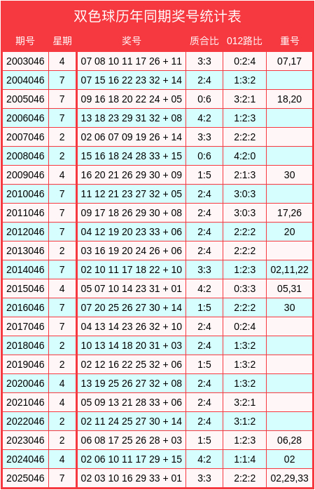 质合比分析:历年同期的奖号质合比为48:90,整体来看合数表现较为强势,去年同期的奖号质合比为3:3,本期分析合数表现较为强势。